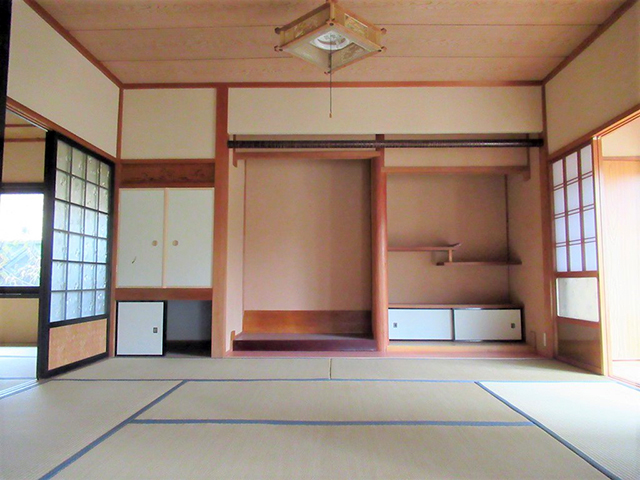 | 土地面積 | 1194.65㎡(約361.37坪) | 建物面積 | 母屋:木造瓦葺2階建 延床面積 約118.09㎡ 倉庫×2 |