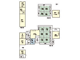建物面積 | 母屋(10LDK)223.36㎡ 門屋(5部屋)109.16㎡ 蔵(2部屋)65.44㎡ |