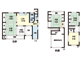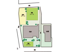 | 土地面積 | 870.06㎡(約263.19坪) | 建物面積 | 木造亜鉛メッキ銅板葺平屋建 191.27㎡(約57.85坪) (居宅/94.26㎡、物置(木造瓦葺2階建 )/1階58.21㎡・2階38.30㎡) |