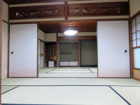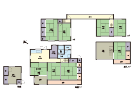 | 土地面積 | 3226.71㎡(約976.07坪) | 建物面積 | 母屋木造セメント瓦2階建 1階 91.22㎡ 2階 34.01㎡ 離れ 1階 43.87㎡ 2階 27.41㎡、 物置 15.56㎡ |