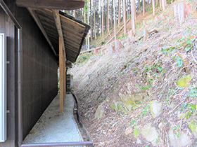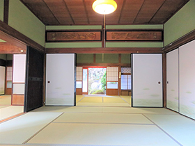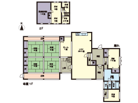 | 土地面積 | 実測 3124.46㎡(約945.14坪)+裏山(セットにて無償譲渡部分3496.72㎡) | 建物面積 | 母屋 木造瓦葺2階建て267.26㎡ 離れ 51.17㎡ |